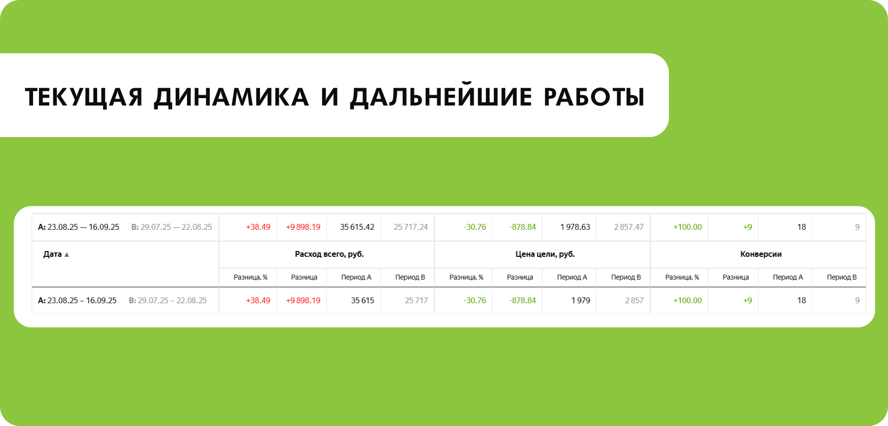 Для эксперимента и большего охвата аудитории еще добавили кампании ЕПК-РСЯ и Мастер. Но потом оставили только Мастер, который показал наибольшую отдачу.