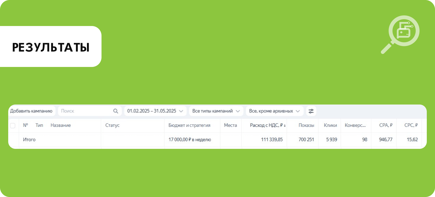 В результате Поиск начал конвертировать, постепенно «раскачались» РСЯ, но лучше всех проявила себя РК «Мастер кампаний по ключевым словам с оплатой за конверсии» — она принесла максимальное количество лидов по оптимальной цене.