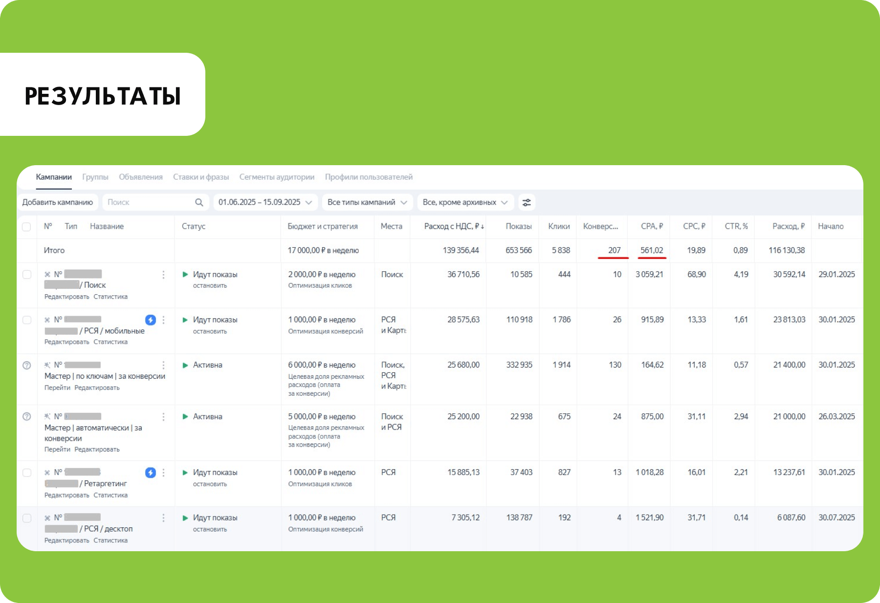 Однако со временем алгоритмы обучились, и все типы кампаний начали показывать стабильный рост результатов: