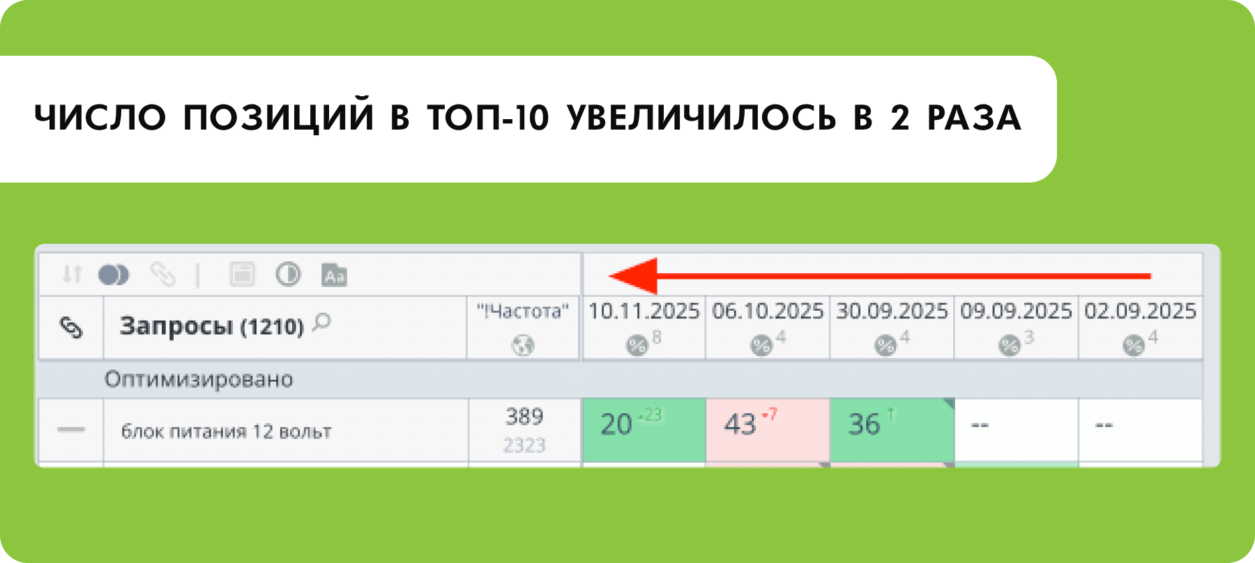 Скорость: Мы получаем результат в позициях быстрее, а значит — быстрее окупаем вложения в проект.
