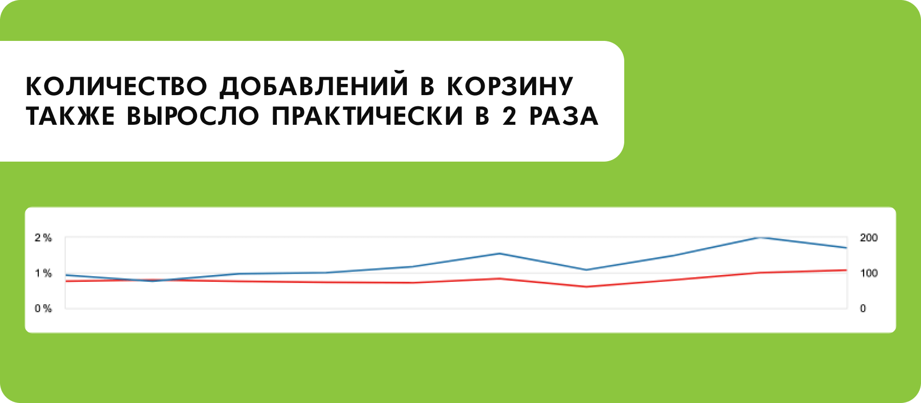 Количество добавлений в корзину также выросло практически в 2 раза.